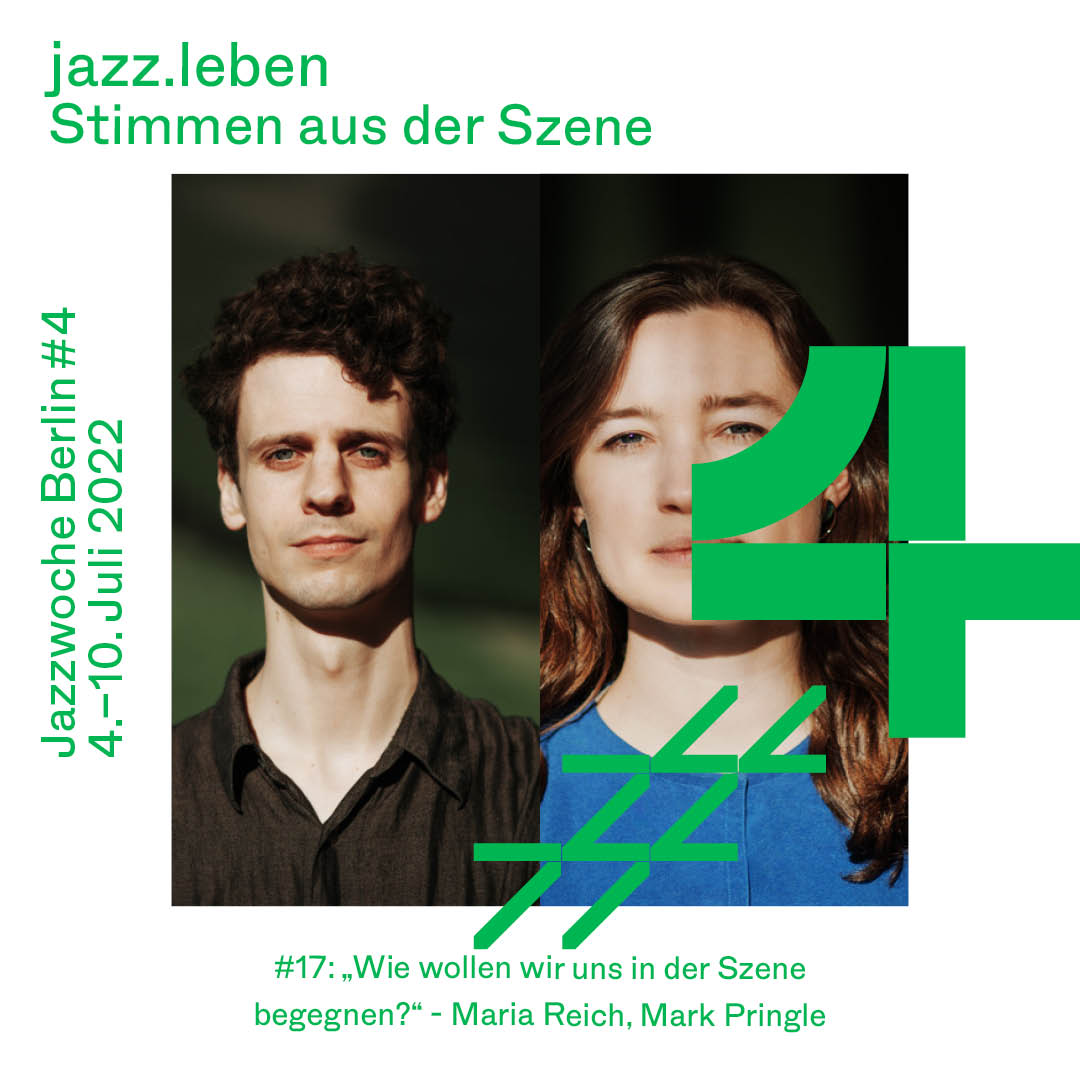 Maria Reich und Mark Pringle tauschen sich über verschiedene Themen aus, unter anderem über verschiedene Arbeitsanforderungen im KünstlerInnen-Alltag, Kulturpolitische Fragestellungen & Forderungen, Sexismus, toxische Männlichkeit im Jazz und in der Ausbildung und "Eltern werden" als KünstlerInnen.